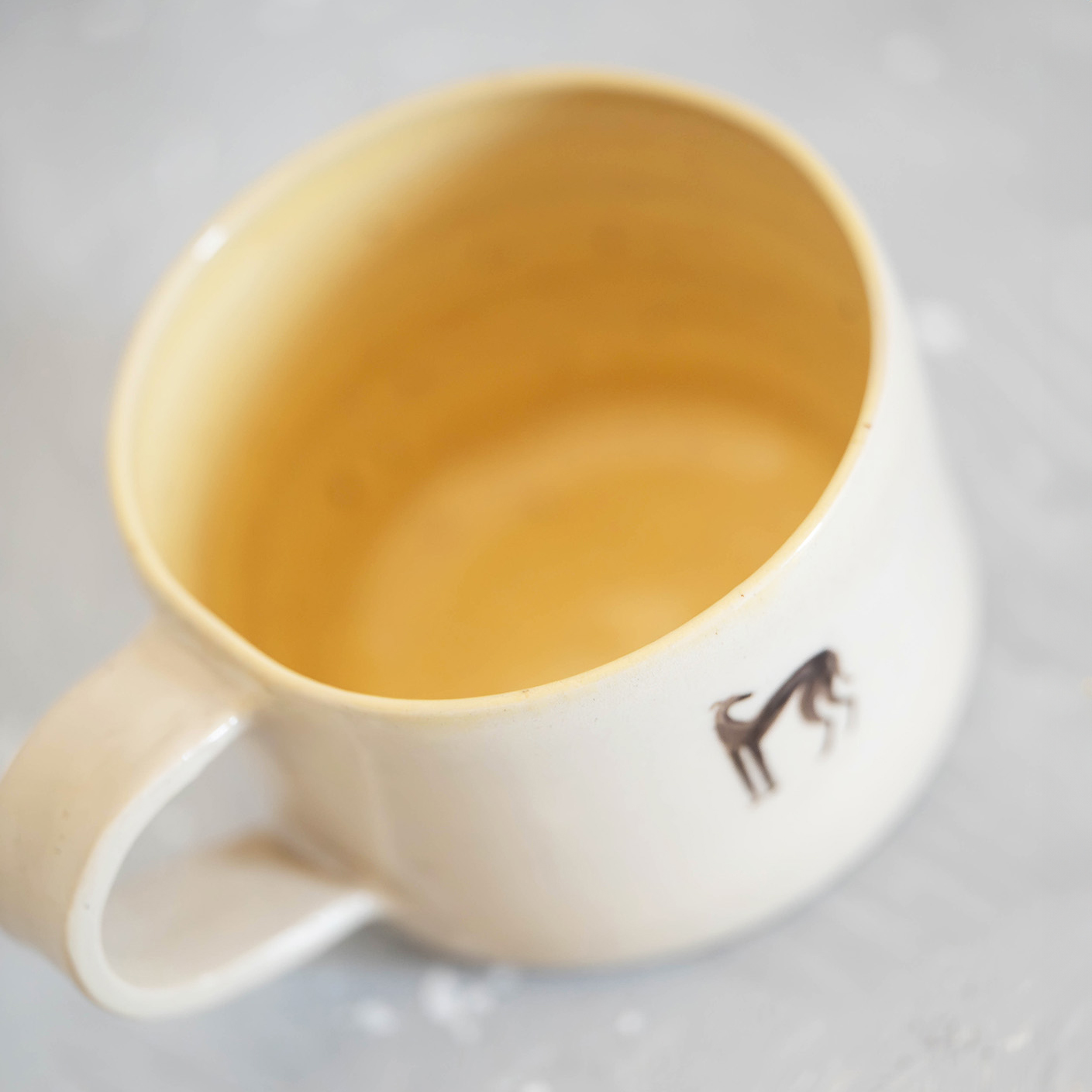 Niski, szeroki, o błyszczącej powierzchni w odcieniu ciepłego beżu. Po obu stronach zdobi go subtelny emblemat charta, dodający mu charakteru i eleganckiej formy. Wnętrze w przyjemnym, „ciasteczkowym” kolorze z delikatnym nakrapianiem.